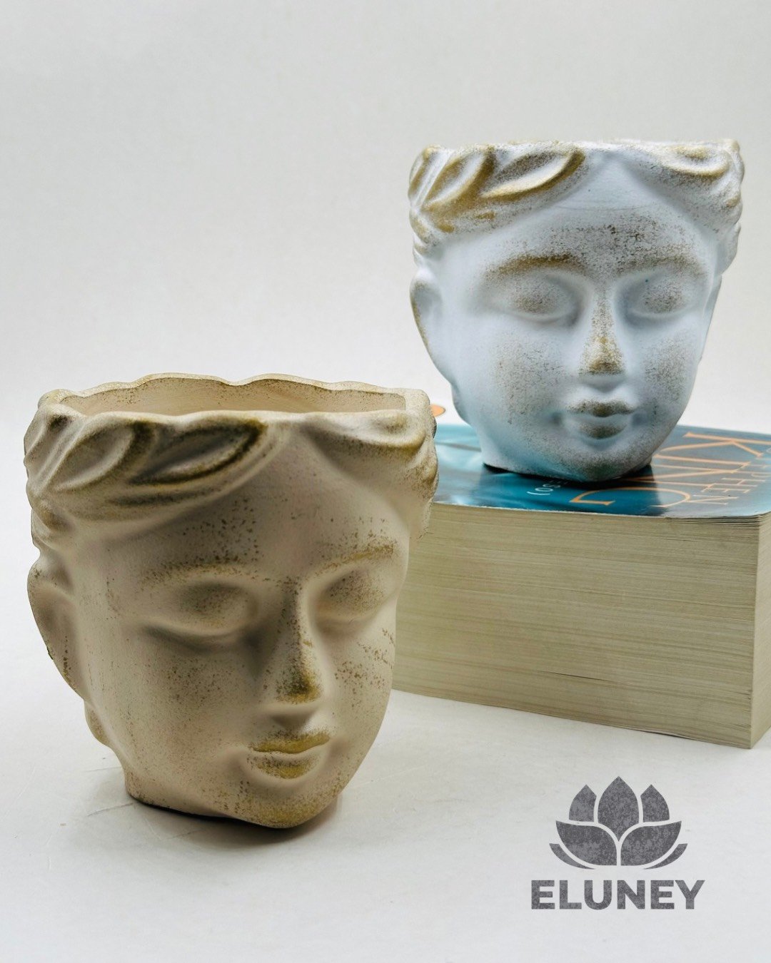 Inspirada en la elegancia atemporal de la diosa Venus, esta maceta es una pieza decorativa que combina arte, naturaleza y estilo. Hecha en hormigón y pintada a mano con delicados detalles, es ideal para suculentas, cactus o plantas pequeñas.